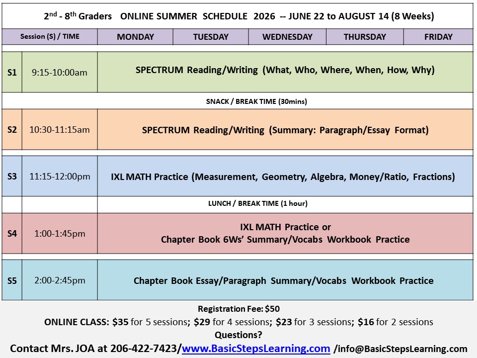 This program is newly developed for 2nd graders to 8th graders. Currently, the rate is only $7.50/hr. With our affordable, easy-going approach, now parents can afford to help their child build an ongoing relationship with learning and, at the same time, reduce those unnecessary hours wasted on game/internet/screen time.